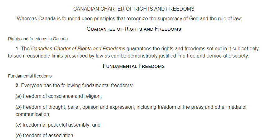 So not only are these measures no where close to be scientifically justified — they’re also completely against our God given Charter of Rights and Freedoms. The following freedoms are granted from God, and not from man. The rights to assembly, freedom of religion, freedom of conscience and the right to remain within or leave Canada. For the government to take away these rights, they must demonstrate they meet The Oakes Proportionality Test — a test in which they would struggle to pass step 1.