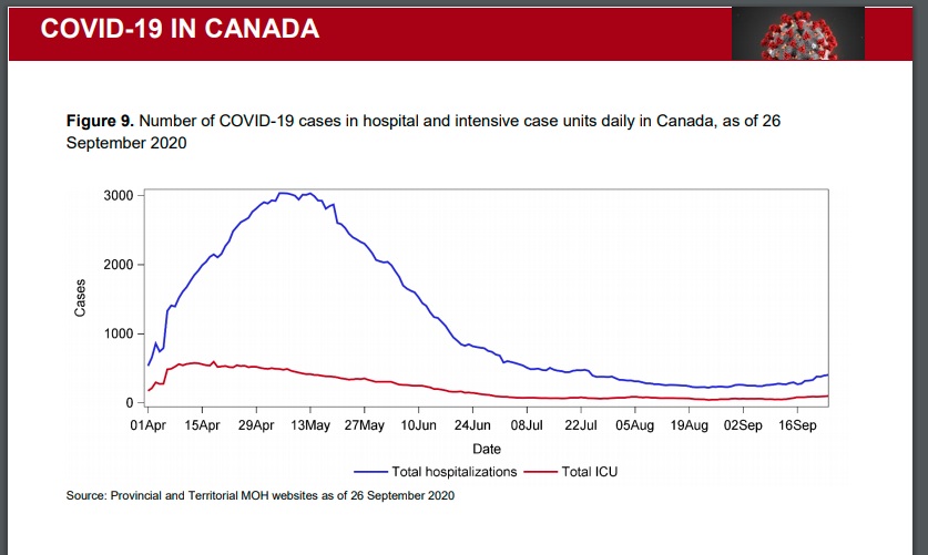 Saturday Oct., 3, 2020 — protesters gathered outdoors to exercise their charter rights, speak out against the governments mishandling of COVID, and the draconian measures that the Quebec government has instituted in the name of safety. It’s worth noting at this time that there is ample hospital capacity in Quebec — and even though cases are rising, we are testing at about three times as much compared to the same period during the “first wave.” In addition, deaths (figures 8 and 9) and hospitalizations have plateaued in comparison to the first wave. This means that none of these measures are merited.