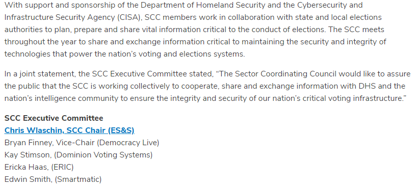 It’s interesting to note that Dominion and Smartmatic have representatives on the executive committee that are supposed to ensure the integrity of the election process with the Department of Homeland Security.