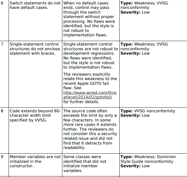Another point of concern in the staff report review was the use of the memcpy function. According to the report “It was noted that six instances of the “memcpy” function are being used. Use of the memcpy function is prone to buffer overflow.” – Dominion Staff report