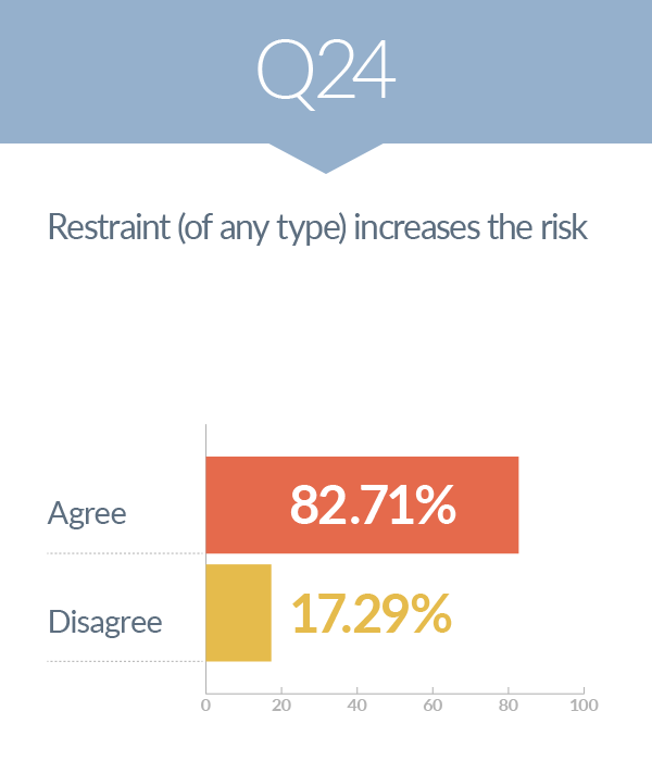 The survey indicated that nearly 83 per cent of participants agreed that “restraint (of any type) increases the risk” of a workplace injury.