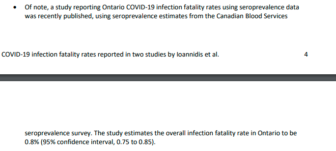 After writing a recent article, I stumbled upon something in a Public Health Ontario document – a reference to a study that pegged Ontario’s infection fatality rate (IFR) at an estimated 0.8%.