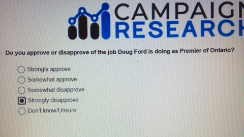 - “Do you approve or disapprove of the job Doug Ford is doing as Premier of Ontario?”