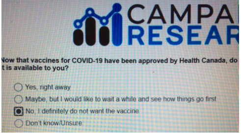 - “Now that vaccines for COVID-19 have been approved by Health Canada do (cuts off and next sentence beginning missing) is available to you?”