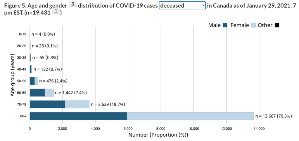 The only people at risk of dying of this virus are the elderly — with 89 per cent of the total deaths (17,296 / 19,461) being above the age of 70 and 96.4 per cent of death being above the age of 60 (18,738 / 19,461). The only others at risk are those with pre-conditions.