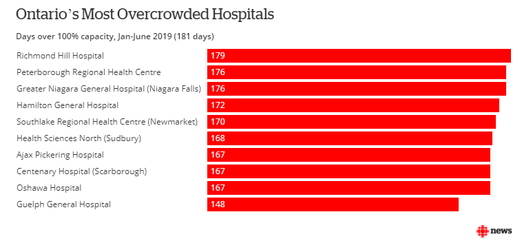 Politicians would like you to think that Covid is the reason our hospitals are in poor shape (overall they are ok right now for the most part), but if our hospitals are in poor shape – it’s because the system was broken pre-Covid. Just look at this report from CBC on the shape of Ontario’s hospitals from Jan-Jun of 2019.