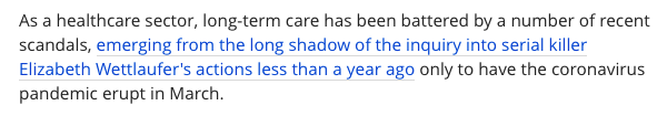 She says some articles even mentioned serial killer Elizabeth Wettlaufer in an article about her.