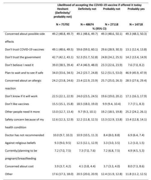 The study also said that “among those who definitely would not get vaccinated today, results suggest the existence of a subgroup with entrenched hesitancy and high distrust of government that may be hard to reach.” It will be hard to build trust as our government continually changes the narrative.