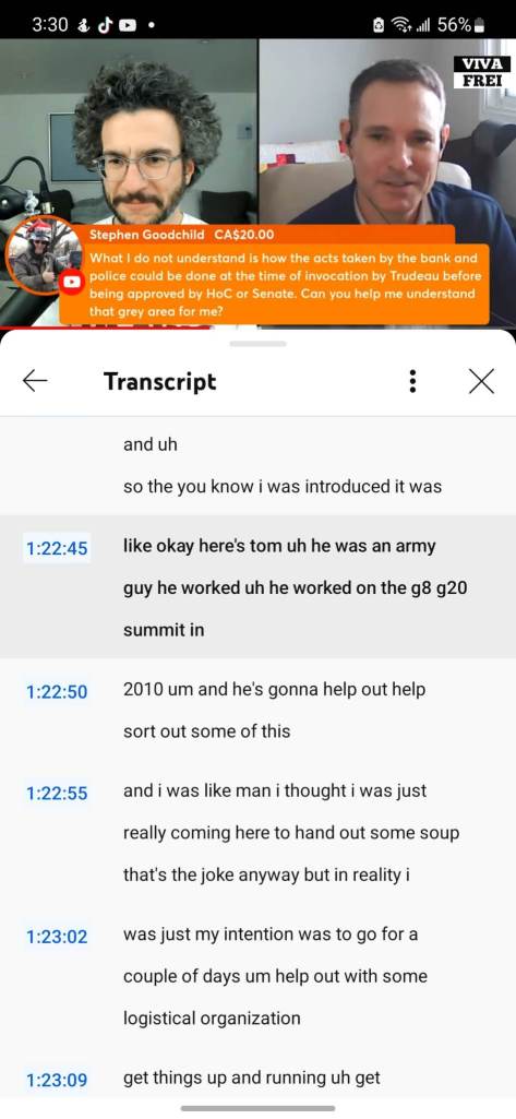 According to testimony given at POEC by BJ Dichter, Tom Marazzo showed up to the protest in Ottawa and said that he would be “dealing with the trucks.” He added that he was “going to be a ghost” and that nobody was going to know he was there. Mr. Dichter also made a point of mentioning to Diverge Media that Tom was a “volunteer, not a board member, not a trucker and not in a position to make decisions without board members.” Mr. Dichter added that he was “repeatedly asked by other volunteers who Tom Marazzo was and why he would disappear for an entire day at a time and then show up as though he was in charge.”