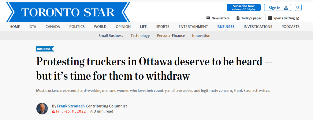 What is especially odd however, is that Frank Stronach, the former Liberal candidate and billionaire wrote an article just 4 days (February 11th) after the text from Mr. French was sent to Keith Wilson titled “Protesting truckers in Ottawa deserve to be heard – but it’s time for them to withdraw.”