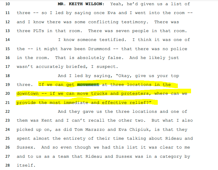 The irony of the situation is that the idea to move trucks was suggested by Ottawa Police according to testimony by Steve K, Ottawa’s city manager. During Mr. Kanellakos’s testimony at the Public Order Emergency Commission, he testified that it was a police officer from the police liaison team that suggested that he “ask them to move the trucks out of some of the neighbourhoods” to which Mr. Kanellakos responded that would “be a good thing.”