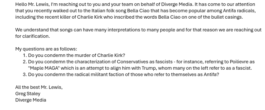 In closing, this should be a story discussed by all of our legacy media in Canada, as it seems that Avi Lewis is signalling to the extreme factions of Canada’s far left that he supports their position.